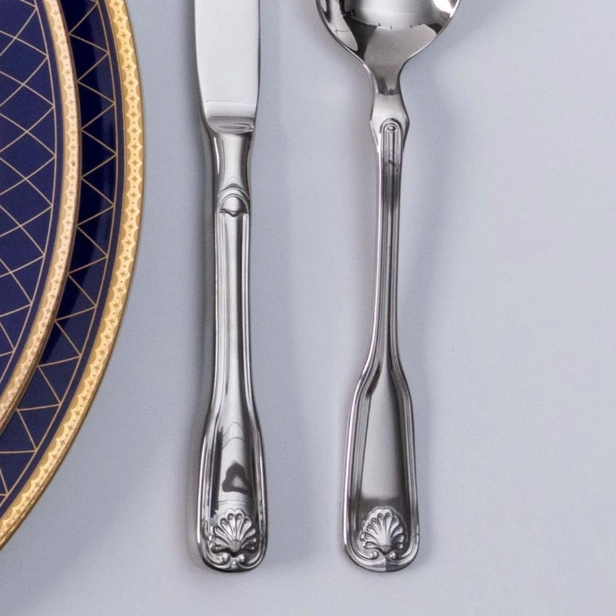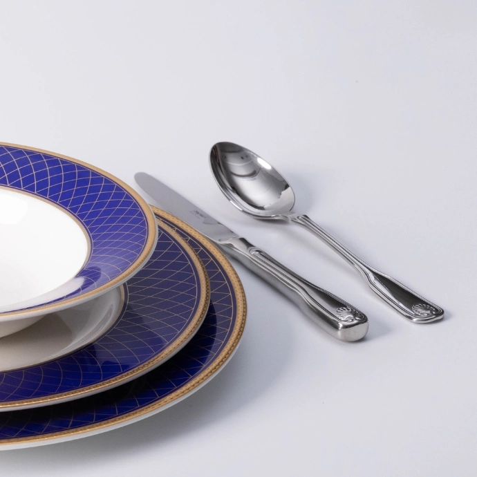 Duke mbajtur emblemën e guaskës së detit, shpesh të lidhur me lindjen e Venusit, ky set i jep bukuri dhe elegancë të përjetshme shtrimit të tryezës tuaj. Çdo pjesë ofron shpërndarje të mirë të peshës dhe një mbajtje të shkëlqyer.